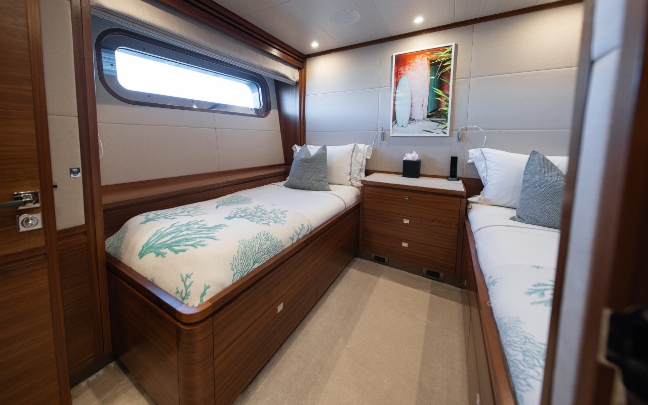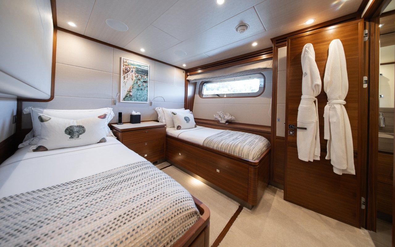 BELLE’s interior cabin features four guest suites, accommodating 8 guests, plus an additional 2 on request.