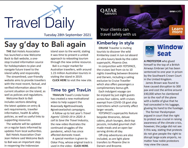 Travel Daily promote YOTSPACE in their Sept 2021 Newsletter.