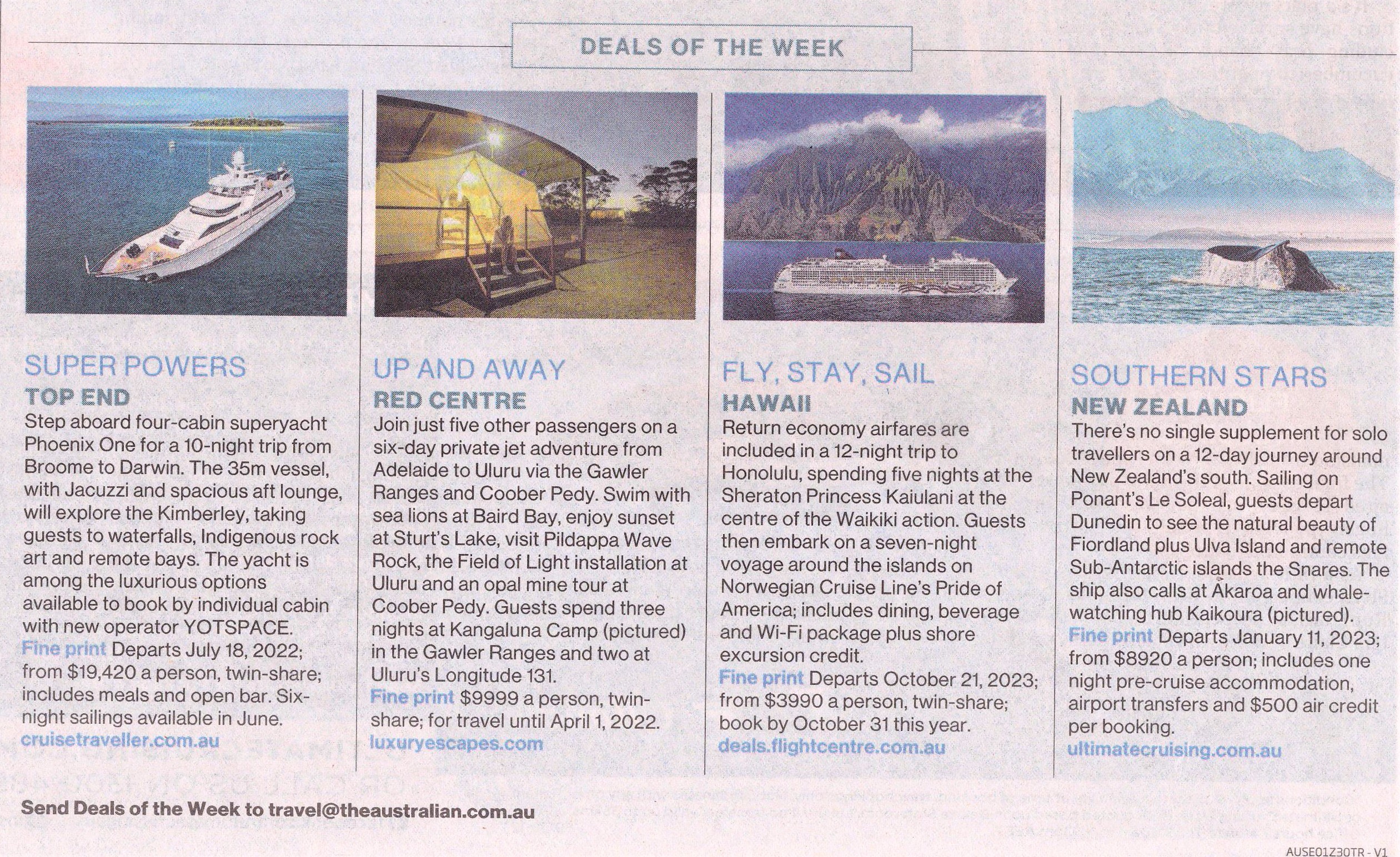The Weekend Australian featured YOTSPACE with Cruise Traveller in the recent Deals of the Week Oct 2021.