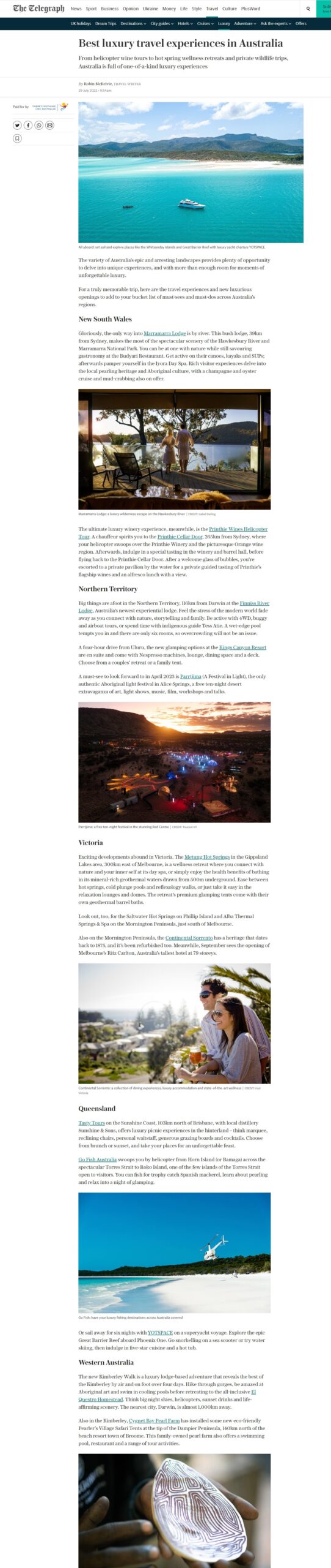 The Telegraph UK Luxury Travel edition featured YOTSPACE superyacht voyages within their Australian Best Luxury Travel Experiences August 2022.
